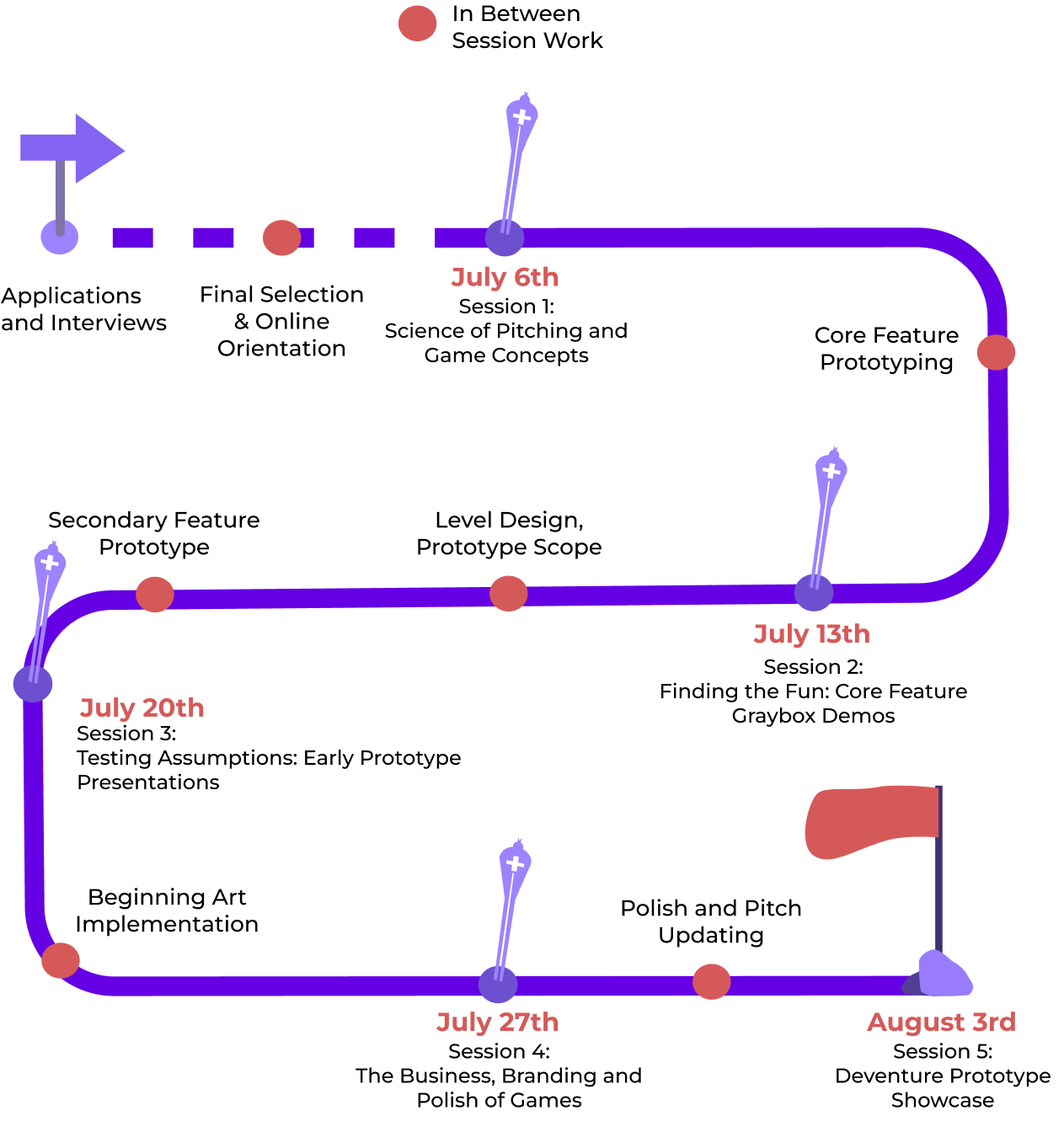We have a whole month worth of programming in store! Apply to join an experience of a lifetime. Our milestone model will get you to A-> Z on your game dev journey!